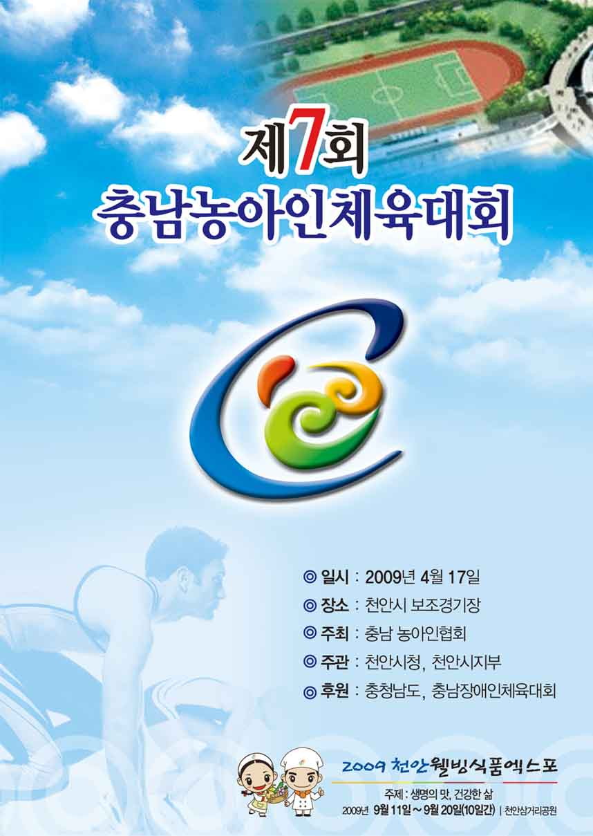1) 대 회 명 : 제7회 충남농아인 체육대회 2) 일 시 : 2009년 04월 17일(금) 10시 ~ 16시 3) 장 소 : 천안시 보조경기장 외 3개소 4) 주 최 : (사)충남농아인협회 5) 주 관 : (사)충남농아인협회 천안시지부, 천안시...
