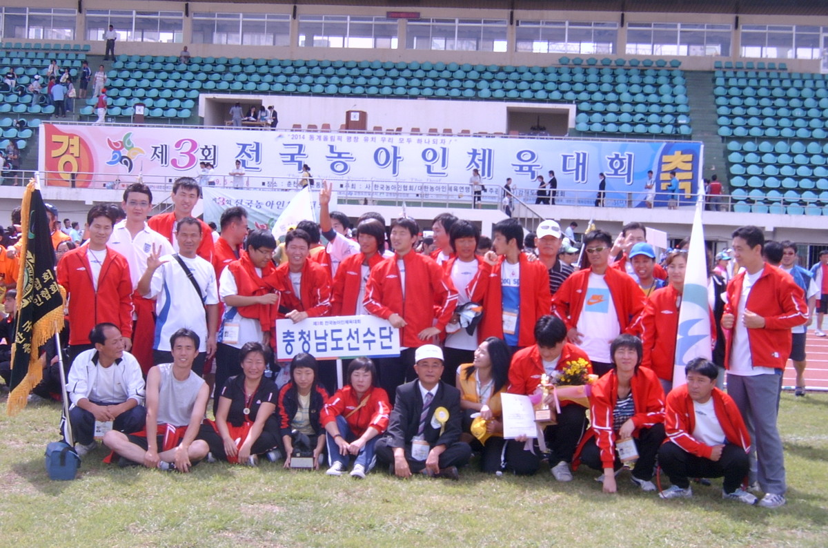 전국농아인체육대회 1.결단식 임원,선수들 서는 모습 2.노협회장 선수보고