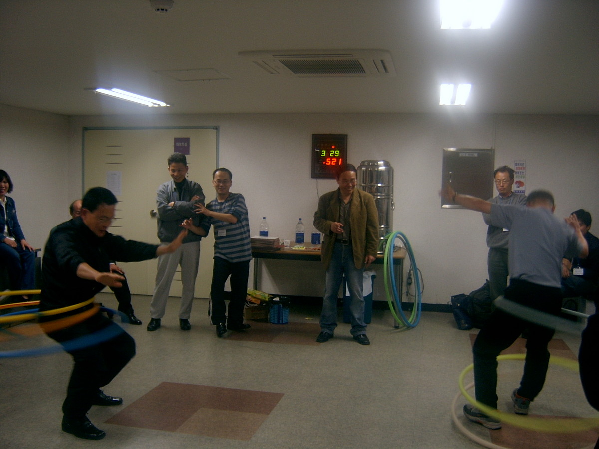 이번 게임은 훌라우프 여러개를 허리에 감고 누가 더 많이 돌리는지 겨뤄보는 거였습니다. 매우 유연하셨던...