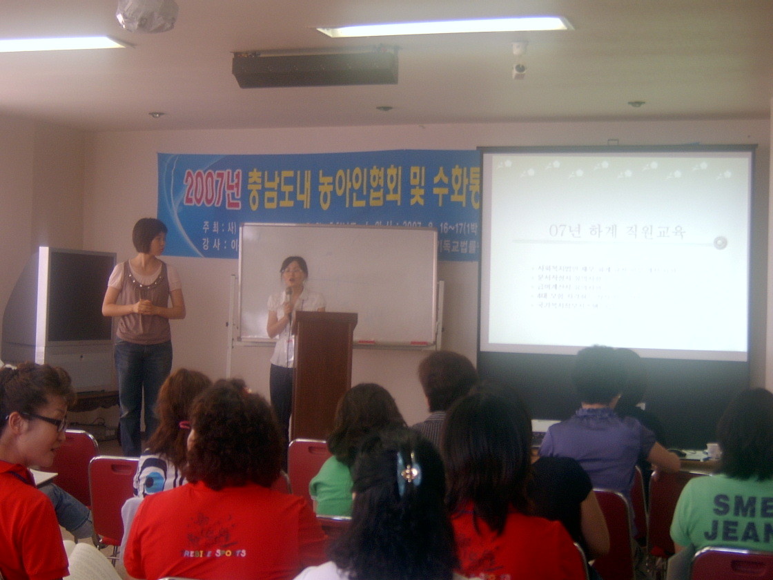 실무자 수어경연대회의 한 부분 ^^ 금산군지부의 꽁트 장면이 보이네요.. 흐릿하게 나온 사진은 아마도 부...