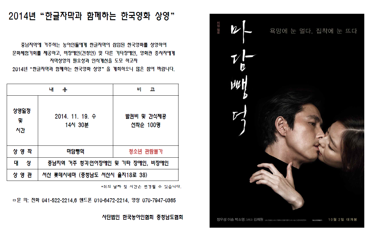 2014년“한글자막과 함께하는 한국영화 상영” (서산)