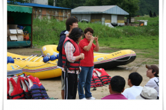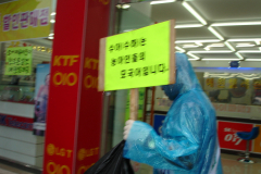 1. 방수조끼(?) 입는 거에 대한 설명중 2. 직원들이 다 입는 장면