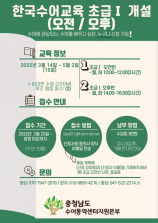 안녕하세요. 충남수어통역센터지원본부 입니다. 우선, 많은 관심을 주신 분들께 감사의 말씀을 드리며 올해도 한국수어교원 양성과정을 개설합니다. 자세한 사항은 홍보물(시간표 포함)을 참고 해주시기 바랍니다. ...