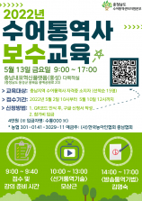 안녕하세요! 충남수어통역센터지원본부입니다. 2022년 5월 13일 수어통역사보수교육(외부보수교육)을 진행합니다. 선거통역과 방송통역에 대한 지식을 쌓아 전문성을 함양하고, 강사님들의 경험을 나누어받을 수 있...