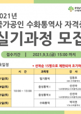 안녕하세요. 충남수어통역센터지원본부입니다. 2021년도 제17회 국가공인 민간자격 수화통역사 시험 일정에 따라 개설하고자 합니다. 상세한 내용은 홍보물 참고하시고, 수강비 납부 건은 접수 마감 이후에 개별 문...