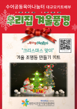 안녕하세요. 천안시 건강가정 지원센터에서 천안시 거주 자녀를 양육하고 있는 농인 가정을 위해 크리스마스 키트(겨울 조명등) 준비해 주셨습니다. 자녀와 함께 크리스마스트리를 만들어 행복한 시간이 보내길 바라...