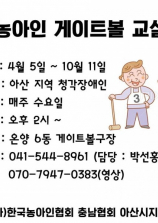 2017 농아인 게이트볼 교실 안내 충남협회 아산시지회에서 아래와 같이 게이트볼 교실을 운영하오니 많은 관심과 홍보 부탁드니다!! * 기 간 : 4월 5일 ~ 10월 11일 * 대 상 : 아산 지역 청각장애인 * 요 일 : ...