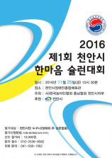 행 사 개 요 ● 대 회 명 : 2016 제1회 천안시 한마당 슐런대회 ● 대회기간 : 2016. 11. 25(금) (개회식10:30~11:00) ● 대회신청 : 개인전 참가접수, 단체별 접수 (신청마감 : 2016.11.04 선착순) ...