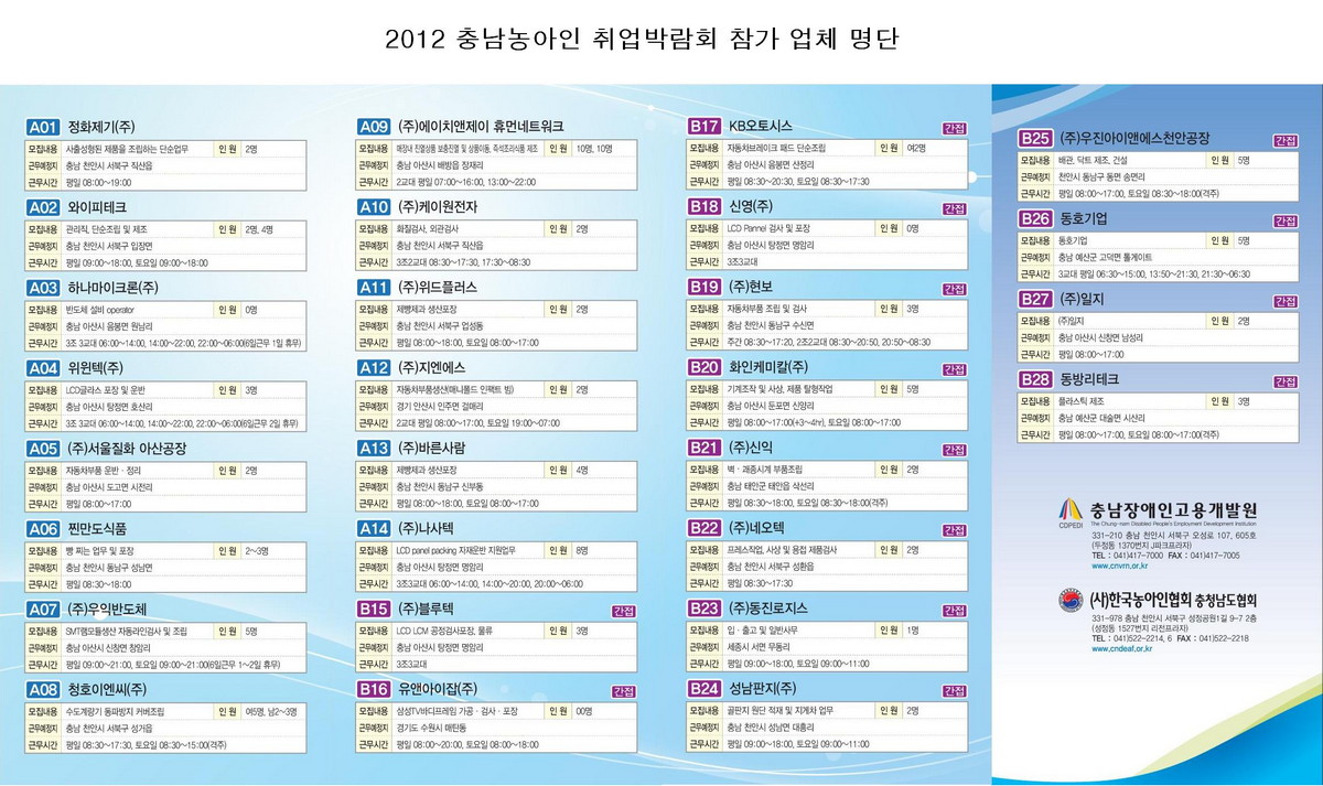 2012 충남농아인취업박람회 참여업체 안내드립니다.